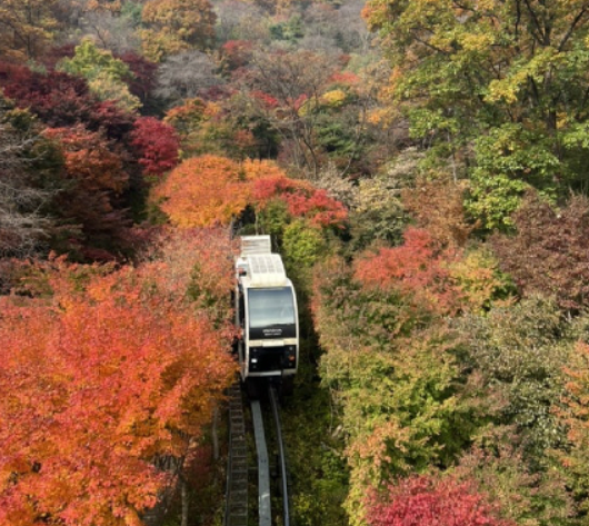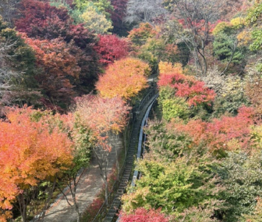 📌포토존 팁: 2승강장에서 내려 전망대까지 산책하며 포토존을 즐기세요. 화려한 단풍과 함께 모노레일이 지나가는 모습을 배경으로 사진을 찍기에 최적의 장소입니다.