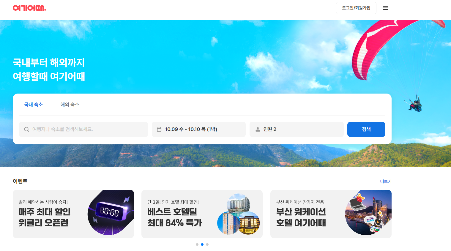 여기어때는 대한민국에서 가장 많이 사용되는 숙박 예약 플랫폼 중 하나로, 캠핑 예약 서비스도 인기입니다.