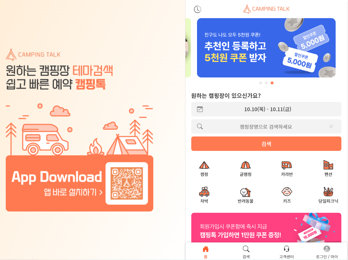 캠핑, 글램핑, 카라반, 펜션 등 다양한 스타일의 숙소를 예약할 수 있으며, 특히 할인 혜택과 다양한 이벤트 덕분에 많은 사용자들에게 사랑받고 있습니다.